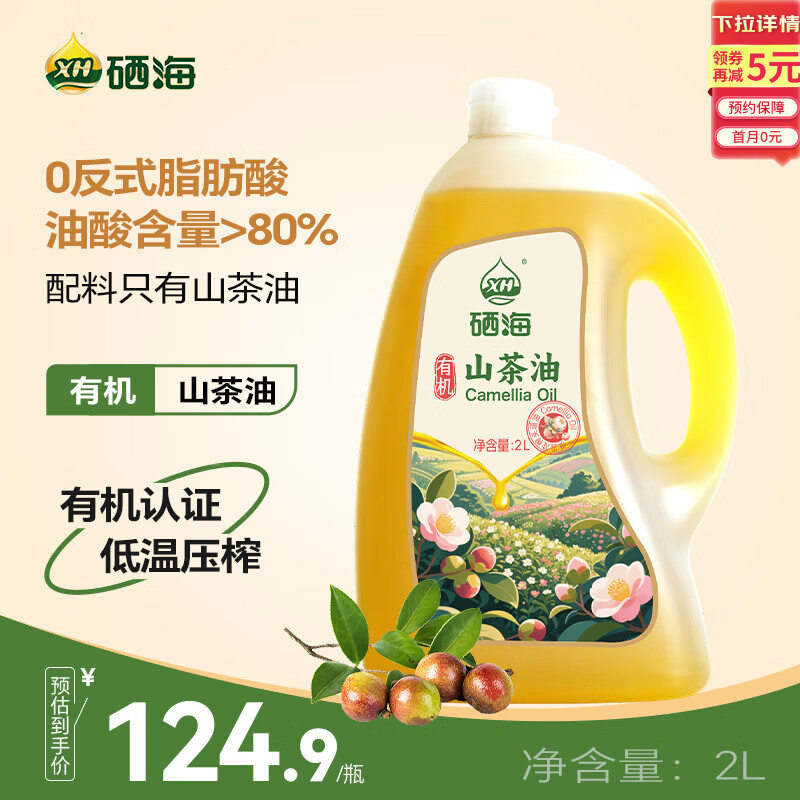 XH硒海 有机山茶油2L 零反式脂肪酸茶籽油物理一级冷榨山茶籽食用油