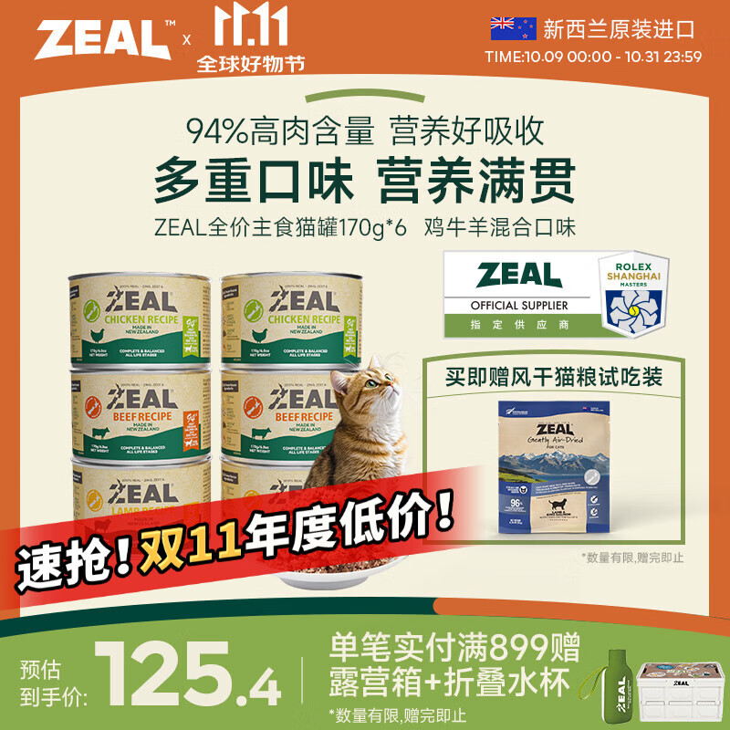 ZEAL猫罐头主食罐头170g*6混合口味猫湿粮幼猫成猫通用新西兰原装进口