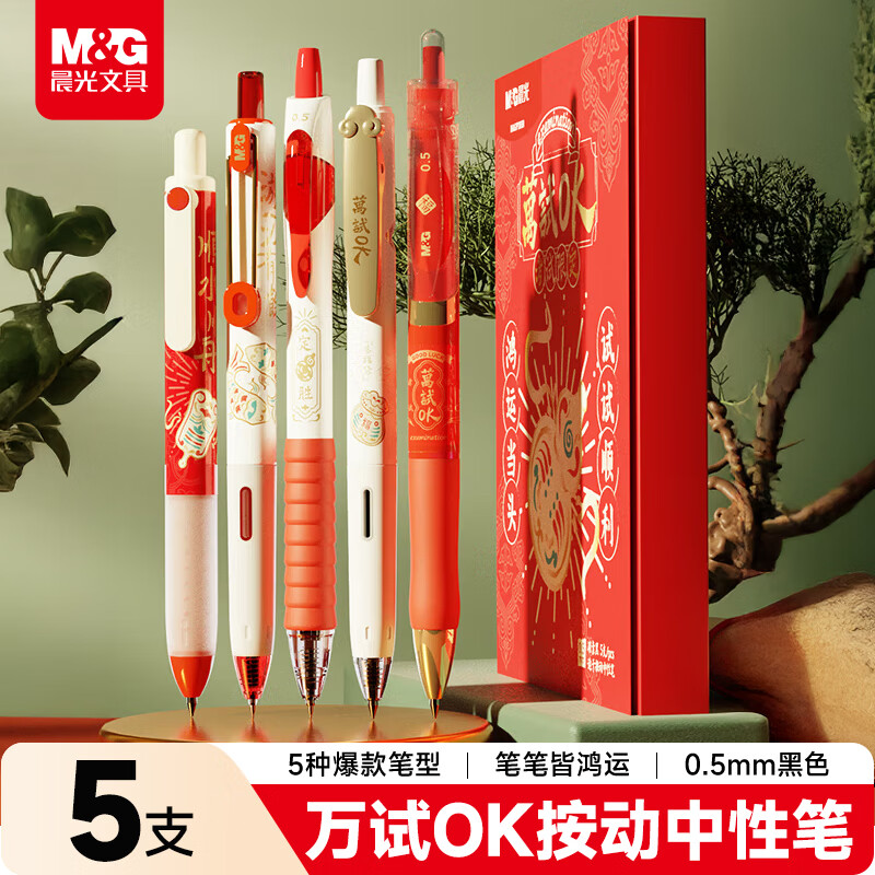 晨光(M&G)文具黑色按动中性笔0.5mm 万试OK考试专用签字笔 速干学生刷题水笔 5支/盒HAGP2650A考试