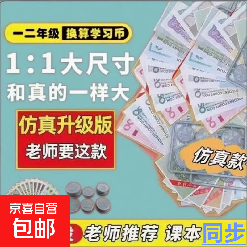 一二年级下册数学认识人民币学习教具儿童玩具仿真钱道具小学生元角分学具换算样票教学套装 升级10套130张60币送收纳袋