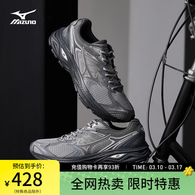 美津浓(MIZUNO)【RACER V2】高街机能复古潮流慢跑鞋男女缓震透气跑鞋 03 碳灰色/浅灰紫/乌木灰/银色 40 (255mm)