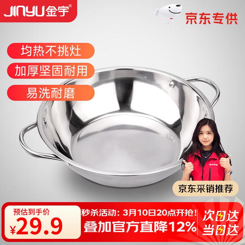 金宇(jinyu)京飨清汤锅(JD)卡式炉锅具火锅专用锅户外电磁炉汤锅 28cm