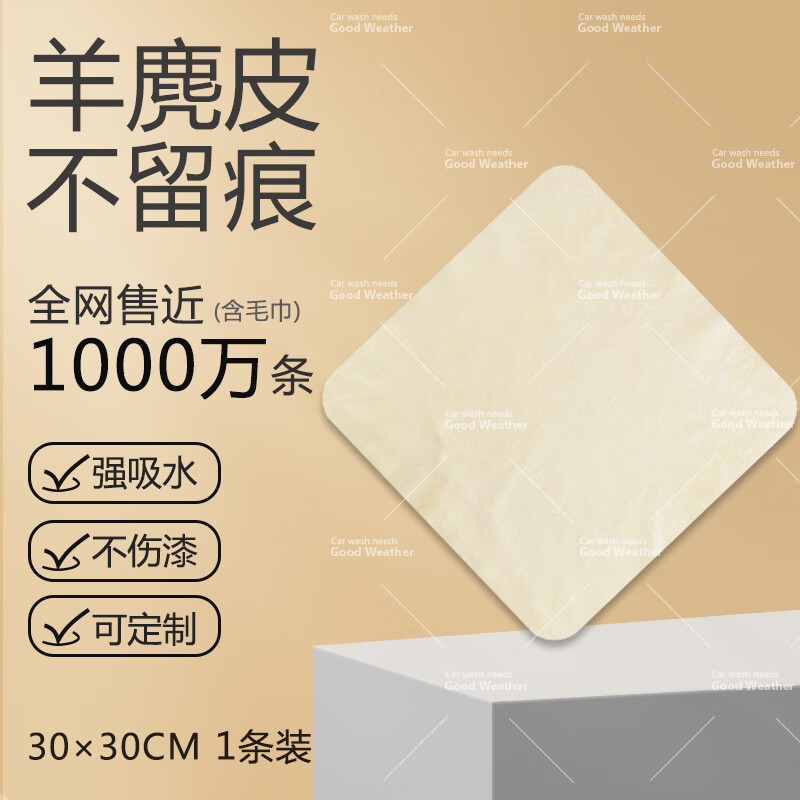 天气不错天然麂皮洗车毛巾玻璃擦车布多功能鹿皮 30*30一条装(规则)