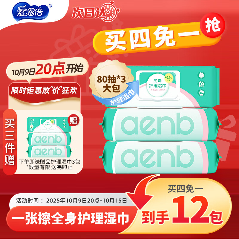 爱恩倍护理湿巾加大加厚80抽*3包卧床老人产妇瘫痪病人儿童清洁湿纸巾