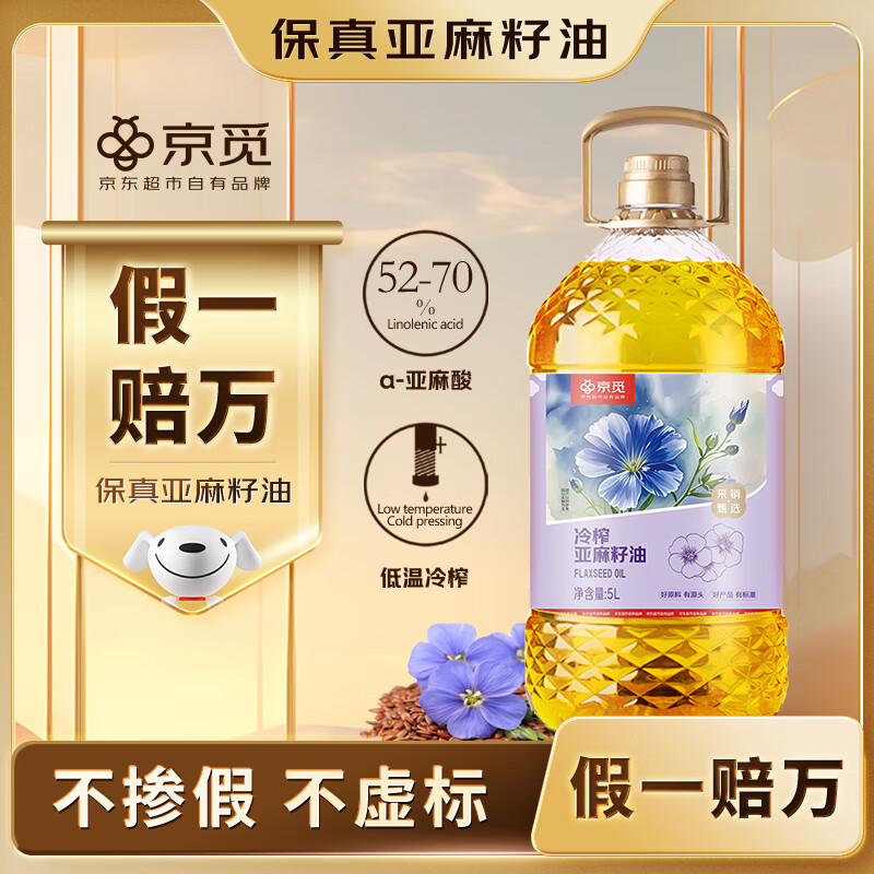 京觅冷榨亚麻籽油5L 低温压榨 一级食用油可热炒 进口原料高亚麻酸