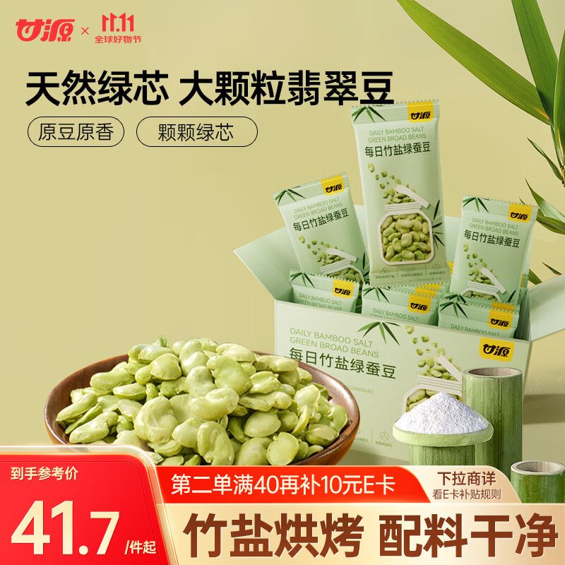 甘源每日竹盐绿心蚕豆500g低脂烘烤即食蚕豆片瓣香酥脆零食