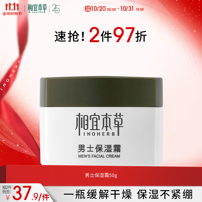 相宜本草 男士保湿霜50g补水保湿男士保湿面霜男士护肤品