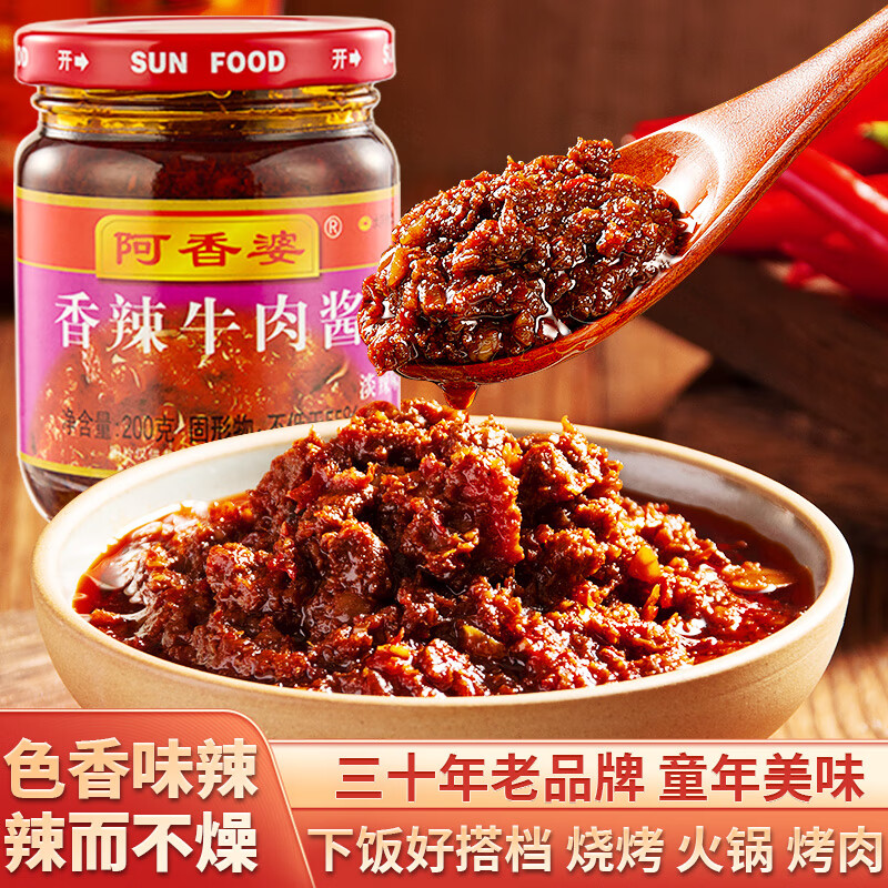 阿香婆 香辣牛肉酱淡甜味200g 辣椒酱下饭菜拌饭拌面夹馍调味酱蘸料1瓶