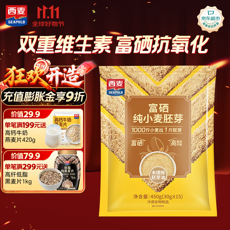西麦富硒小麦胚芽燕麦片450g 营养早餐高蛋白质多种维生素独立包装