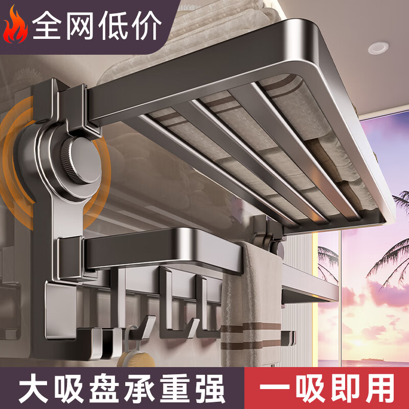 百悍吸盘毛巾架免打孔卫生间置物架浴室挂件厕所卫浴洗手间浴巾架挂架