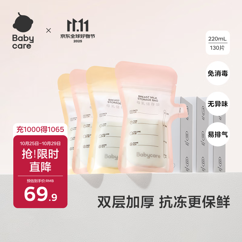 babycare储奶袋装奶保鲜袋母乳储存袋保鲜袋一次性装奶袋220ml*130片