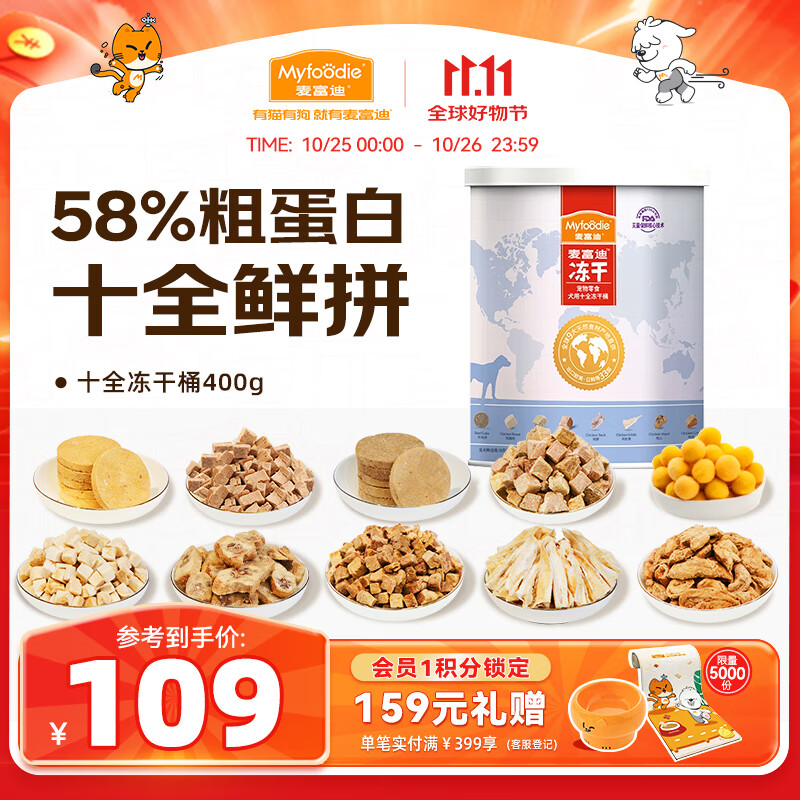 麦富迪狗狗零食 十全冻干桶400g成幼犬补充营养训练奖励解馋宠物零食