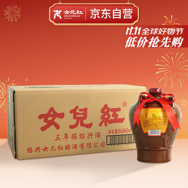 女兒红 陶坛三年 半干型 绍兴黄酒 1.5L*6坛 整箱装小坛冬酿 热卖商品