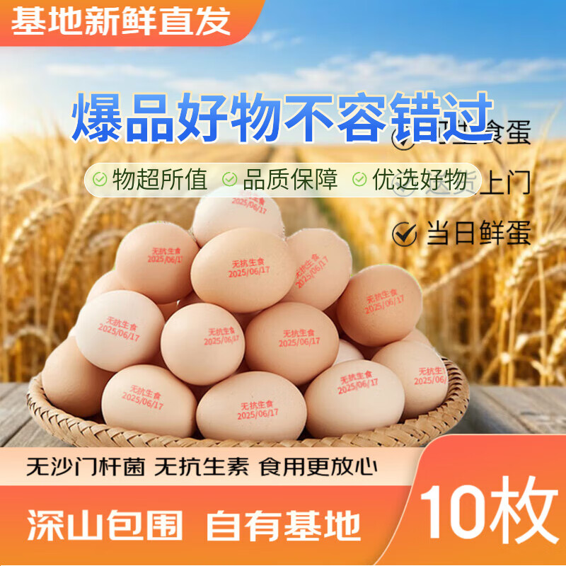 耕果妙【京东上门】无抗可生食鸡蛋30枚/20/10枚大颗精品中秋礼盒装送礼 【试吃款】可生食鸡蛋10枚