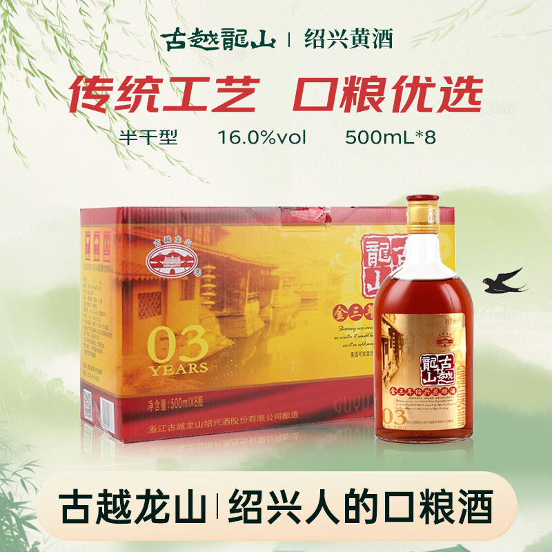 古越龙山 库藏金三年 半干型 绍兴黄酒 500ml*8瓶 整箱装