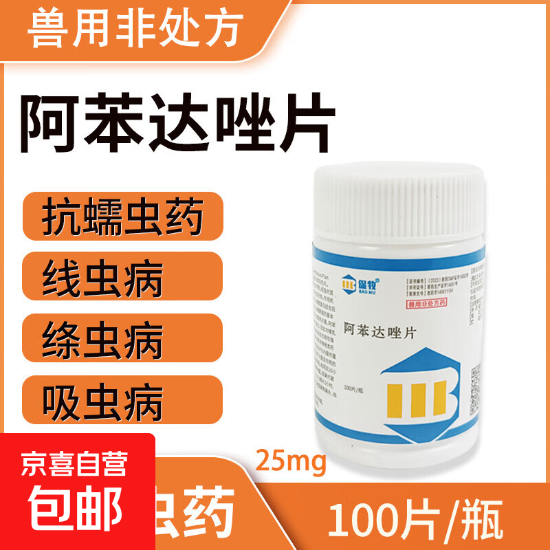 兽用驱虫药阿苯达唑片动物宠物猫狗驱虫口服药家畜牛羊鸡鸭鹅打虫 兽用阿苯达唑片 1瓶/100片