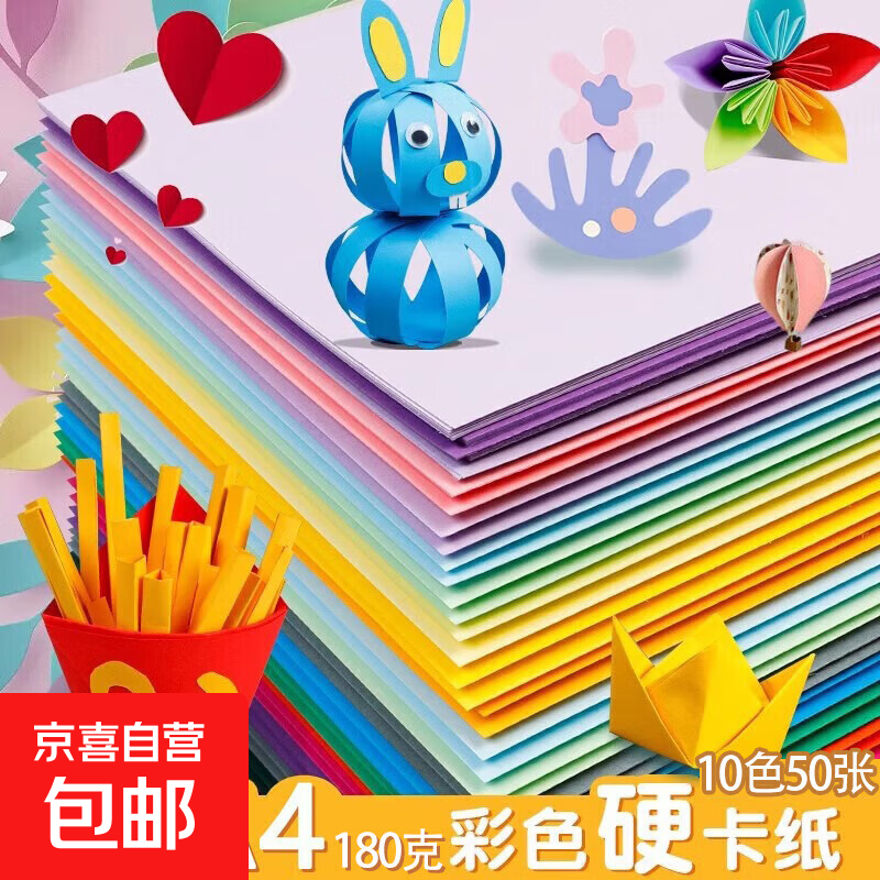 A4硬卡纸180克100张手工卡纸加厚儿童手工课diy立体折纸幼儿园剪纸折纸美术绘画卡纸 【直播专属】A4【180克】5色5张