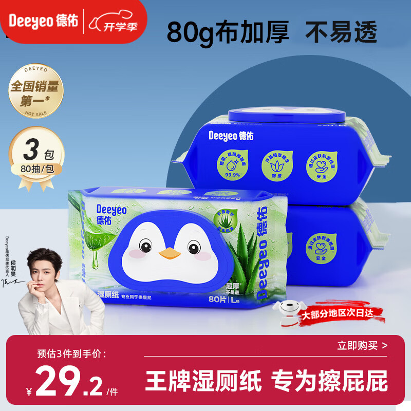 德佑芦荟湿厕纸80抽3包厕所湿纸巾屁屁清洁无刺激新老包装随机发货
