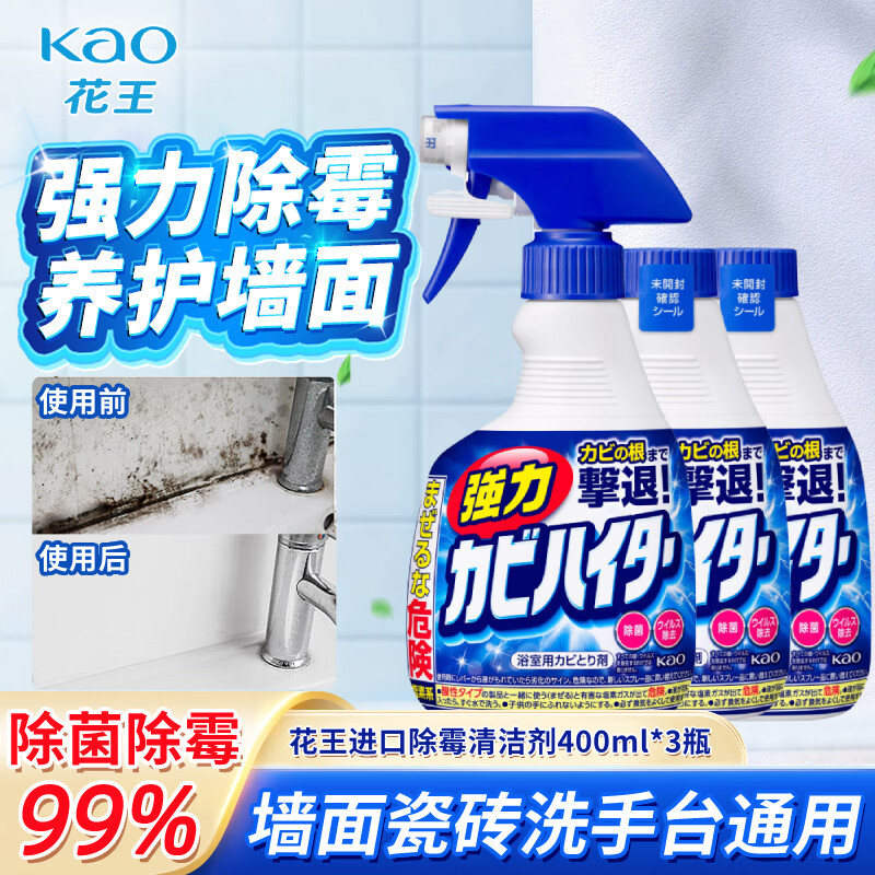 花王(KAO)强力除霉剂400m*3浴室墙面墙体除霉喷雾啫喱瓷砖卫浴清洁清洗剂