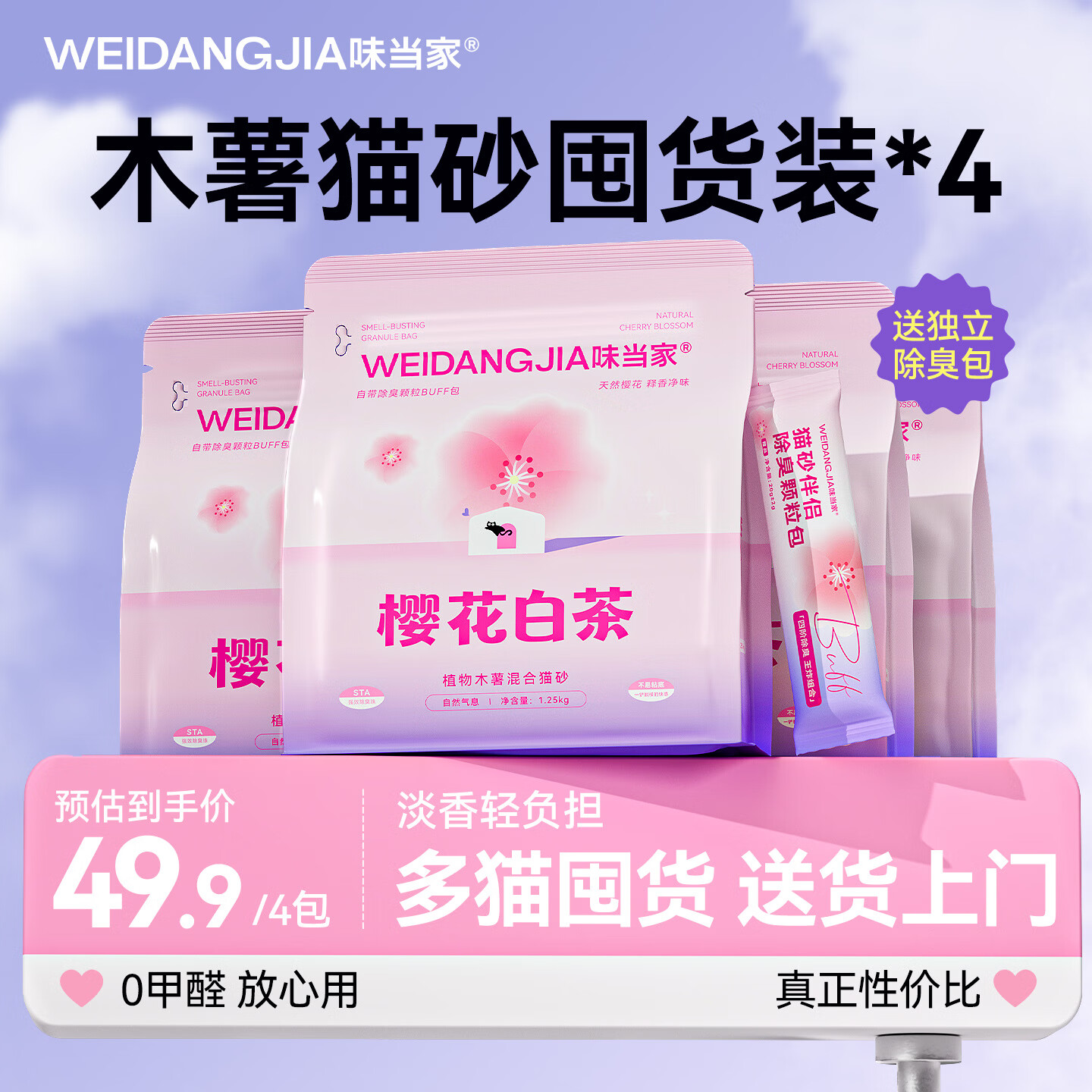 味当家50%纯木薯猫砂混合豆腐猫砂2.5斤*4包樱花茶多酚赠小苏打除臭包
