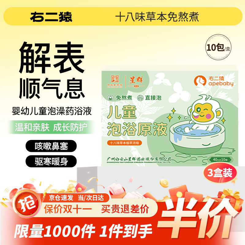 右二猿儿童泡澡药浴包40ml*30袋 婴幼儿换季感冒咳嗽驱寒暖身泡澡泡脚包