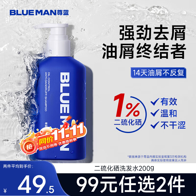 尊蓝1%二硫化硒去屑洗发水200g去屑止痒控油蓬松头皮清爽洗发露男女士
