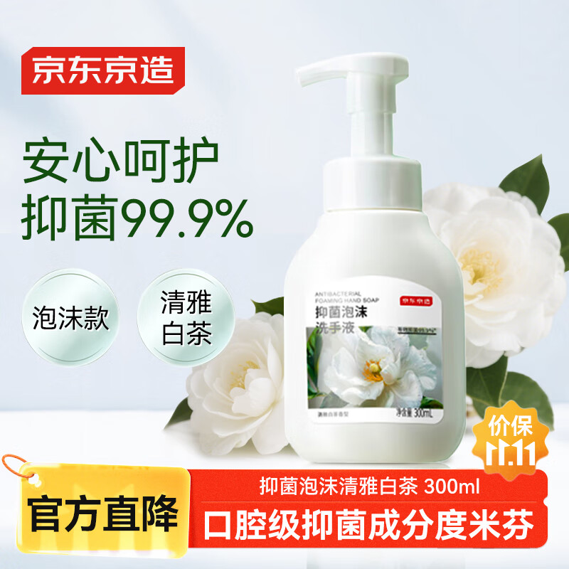 京东京造抑菌99.9%清雅白茶泡沫洗手液300ml 健康口腔级儿童成人消毒易洗