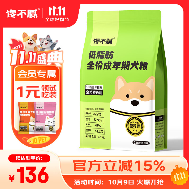 馋不腻低脂狗粮肥胖成犬狗粮易消化胰腺炎全犬大小型犬狗粮通用型2.5kg