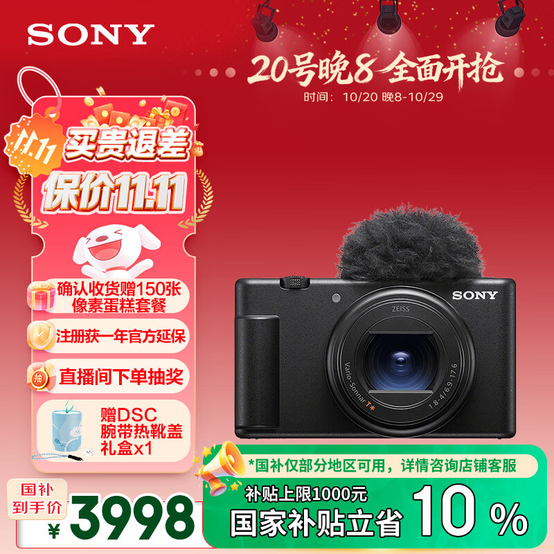 索尼(SONY)【保价11.11】ZV-1 II 二代数码相机 4K视频/超广角/大光圈 黑色(ZV-1M2/ZV1M2/ZV1 II/ZV1二代)