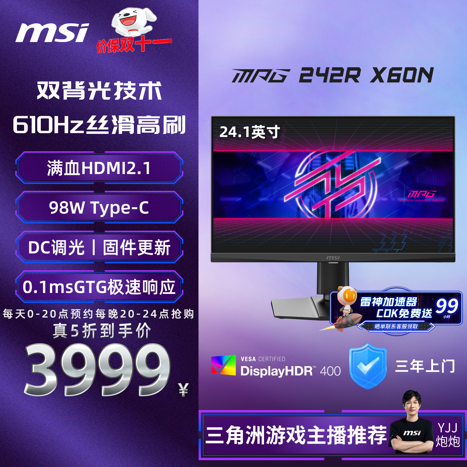 微星(MSI)24.1英寸610Hz电竞显示器600Hz 旋转升降TN屏 Type-c 98W 电脑游戏电竞显示屏 MPG 242R X60N