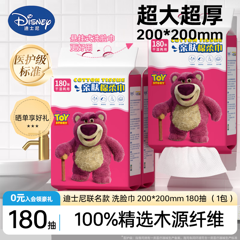 爱怡优×迪士尼联名 洗脸巾 180抽*单提一次性悬挂式洁面巾绵柔巾毛巾厚