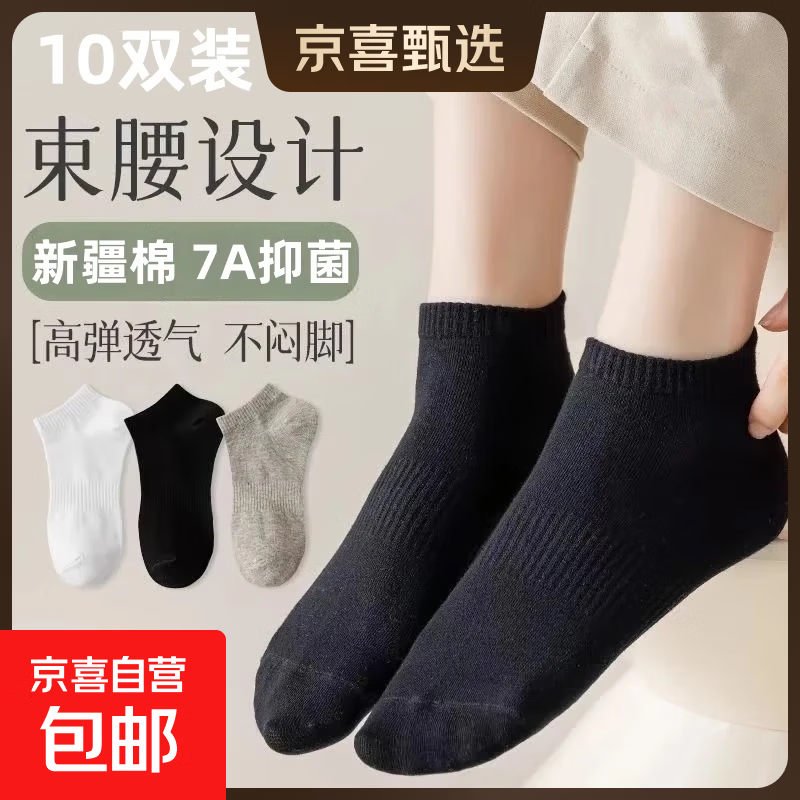 男士袜子男精梳棉7A抗菌新疆棉短款运动夏女款透气不臭脚纯色船袜 短筒白色 10双