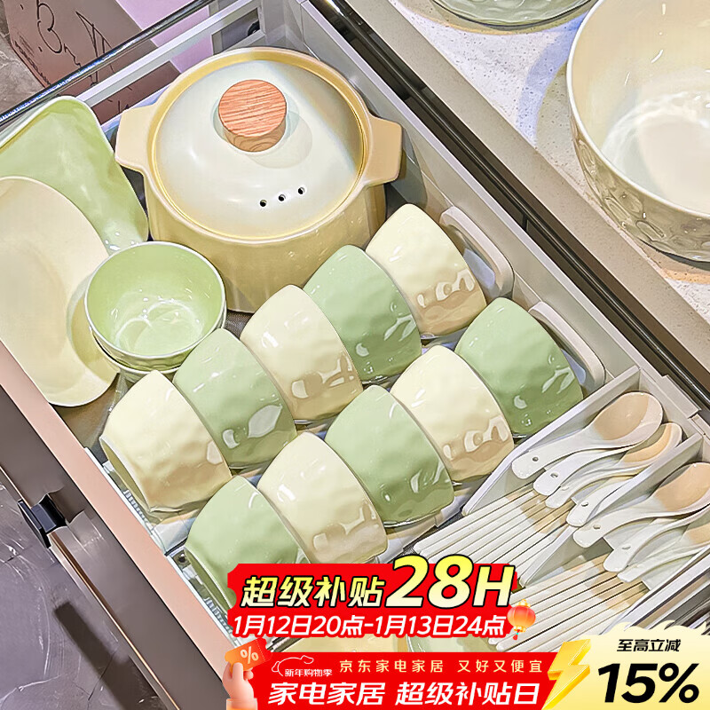 洛威奶油风碗碟套装家用2025新款高颜值釉下彩餐具套装乔迁碗盘筷碗具