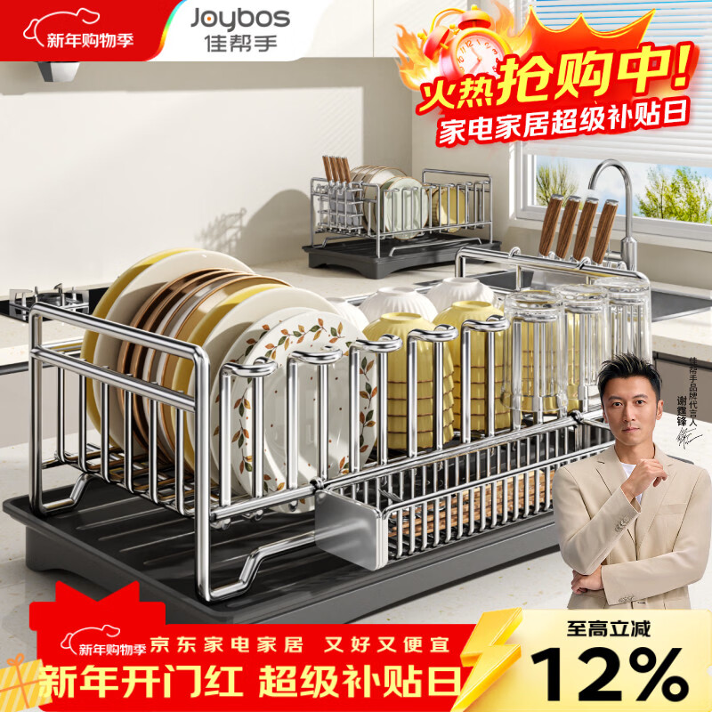 佳帮手【谢霆锋推荐】不锈钢碗碟架厨房沥水篮收纳篮一体沥水架家用神器