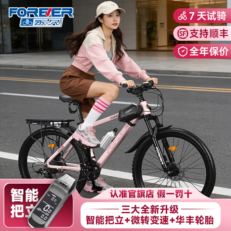 永久山地自行车成人山地车学生铝合金变速油碟刹内走线男女士单车赛车 【铝架/密封轴承】粉色 一体轮 27.5寸 30速【建议身高175-195cm】