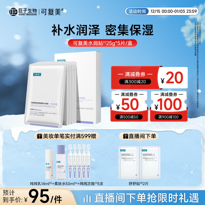 可复美透明质酸钠水润贴大水膜5片/盒 保湿补水弹嫩焕颜夕