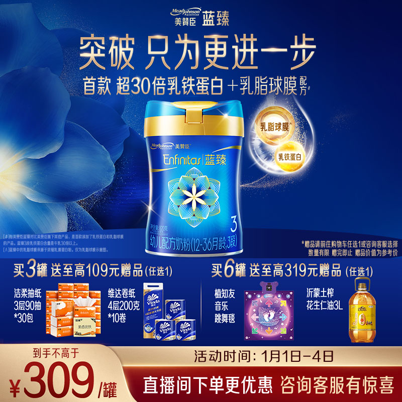 美赞臣蓝臻 3段奶粉 幼儿配方奶粉(12-36月)820g 实证乳铁蛋白 新国标