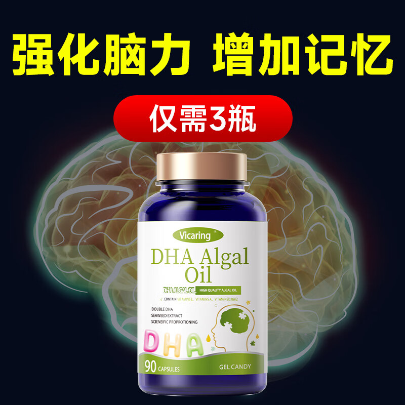 dha藻油补脑记忆力 儿童学生补脑6-18岁青少年脑力营养补充三瓶装