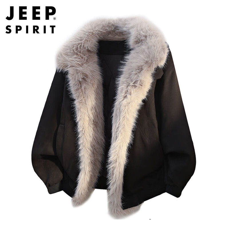 JEEP SPIRIT吉普美式座山雕毛领羽绒棉服男冬季保暖棉袄宽松外套 黑色 M