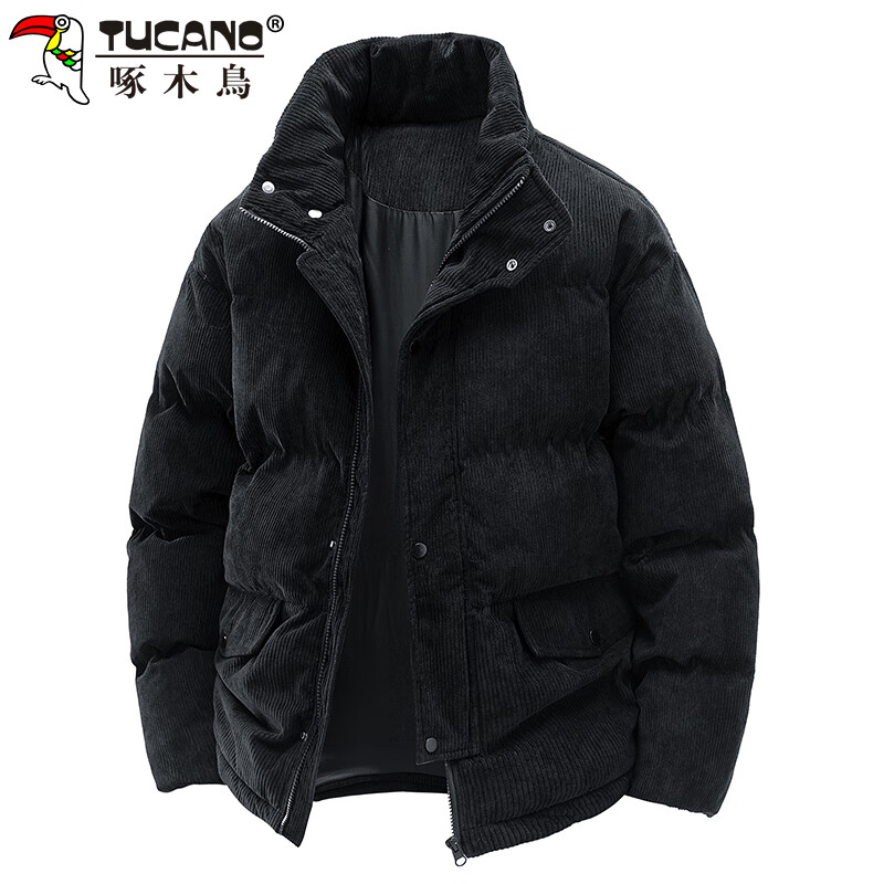 啄木鸟(TUCANO)棉服男冬季灯芯绒外套男士加厚保暖面包服立领百搭棉袄 黑色 M