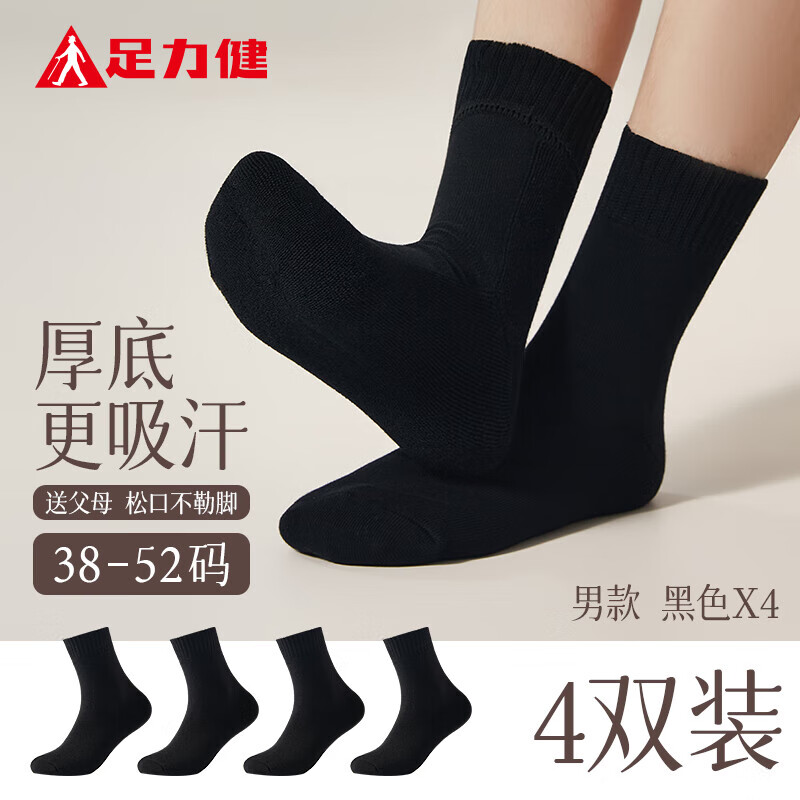 足力健男袜秋冬加厚防臭袜羊毛保暖袜男士长袜毛圈松口袜中筒袜抗菌