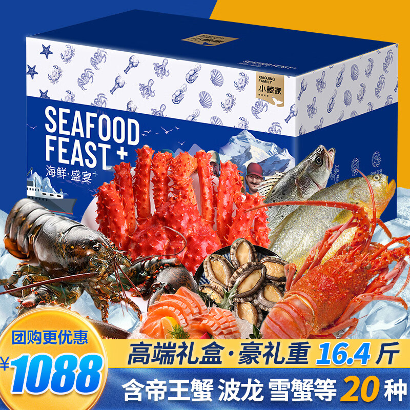 【现货】小鲸家海鲜礼盒大礼包20种16.4斤含帝王蟹/龙虾/海参年货节日送礼生鲜源头直发