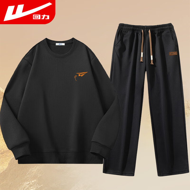 回力(Warrior)运动套装男春秋季宽松百搭卫衣男跑步健身运动裤子男两件套
