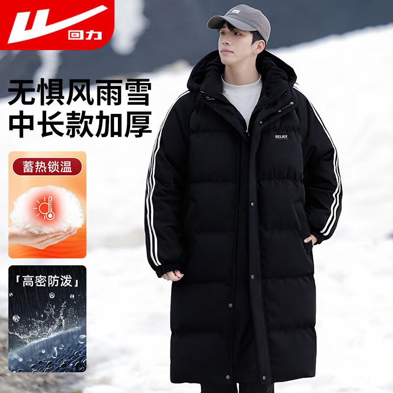 回力(Warrior)棉服男冬季中长款潮流连帽加厚保暖棉衣外套男情侣宽松