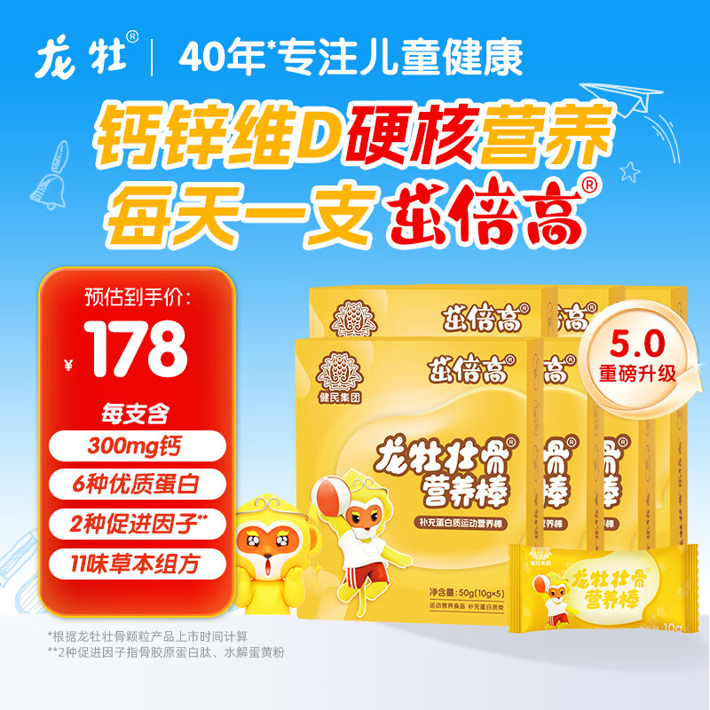 龙牡壮骨营养棒6盒装青少年儿童茁倍高钙加锌维生素d补充蛋白质