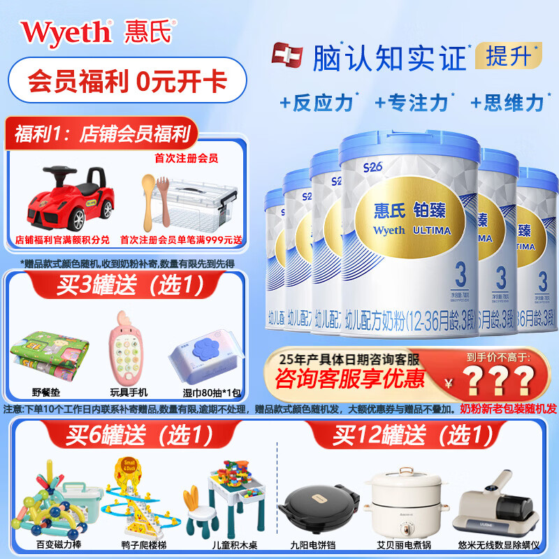 惠氏【官方授权】【官方店】惠氏铂臻奶粉瑞士原装进口780G奶粉 3段780克*6罐