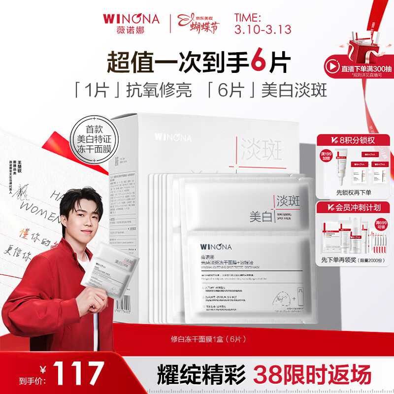 薇诺娜【钦选同款】修白冻干光感淡斑冻干面膜6片补水护肤品