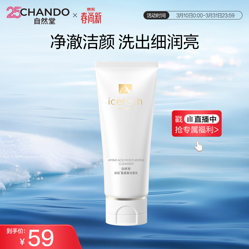 自然堂【常华森同款】冰肌氨基酸保湿洁面乳100g洗面奶 适敏肌生日