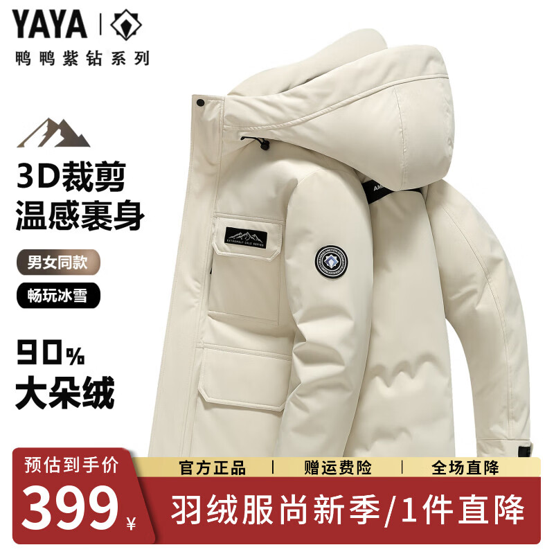 鸭鸭工装羽绒服男士户外运动外套冬季新款休闲百搭连帽新年保暖上衣服