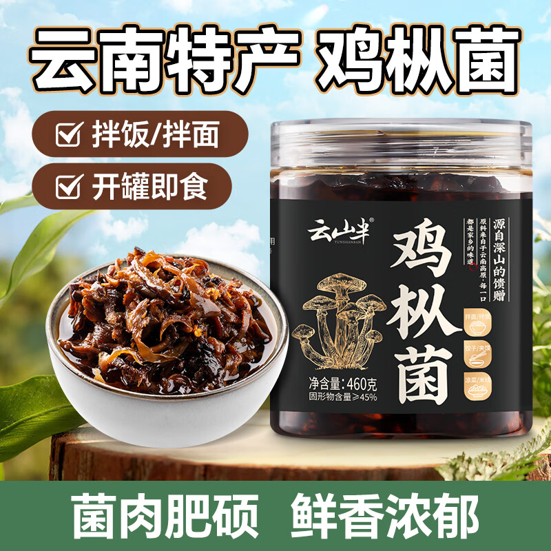 云山半鸡枞菌460g 云南特产香辣即食香覃菌菇酱油鸡枞菌酱拌面下饭菜